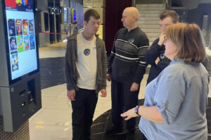 Pani Dyrektor oprowadziła nas po całym obiekcie, opowiadając o pracy na różnych stanowiskach – od obsługi widza, przez zadania techniczne, aż po obowiązki związane z funkcjonowaniem kina jako całości.