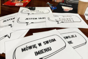 Celem niedawno rozpoczętych treningów jest przede wszystkim wsparcie uczestników w zrozumieniu, czym jest samorzecznictwo oraz rozwijanie umiejętności mówienia we własnym imieniu. Podczas zajęć Oliwię i Piotrka wspierają Honorata i Justyna, a przyszli trenerzy w tym czasie wzmacniają pewność siebie, uczą się wyrażać swoje potrzeby, opinie i decyzje oraz poznają sytuacje, w których mogą i powinni zabierać głos.