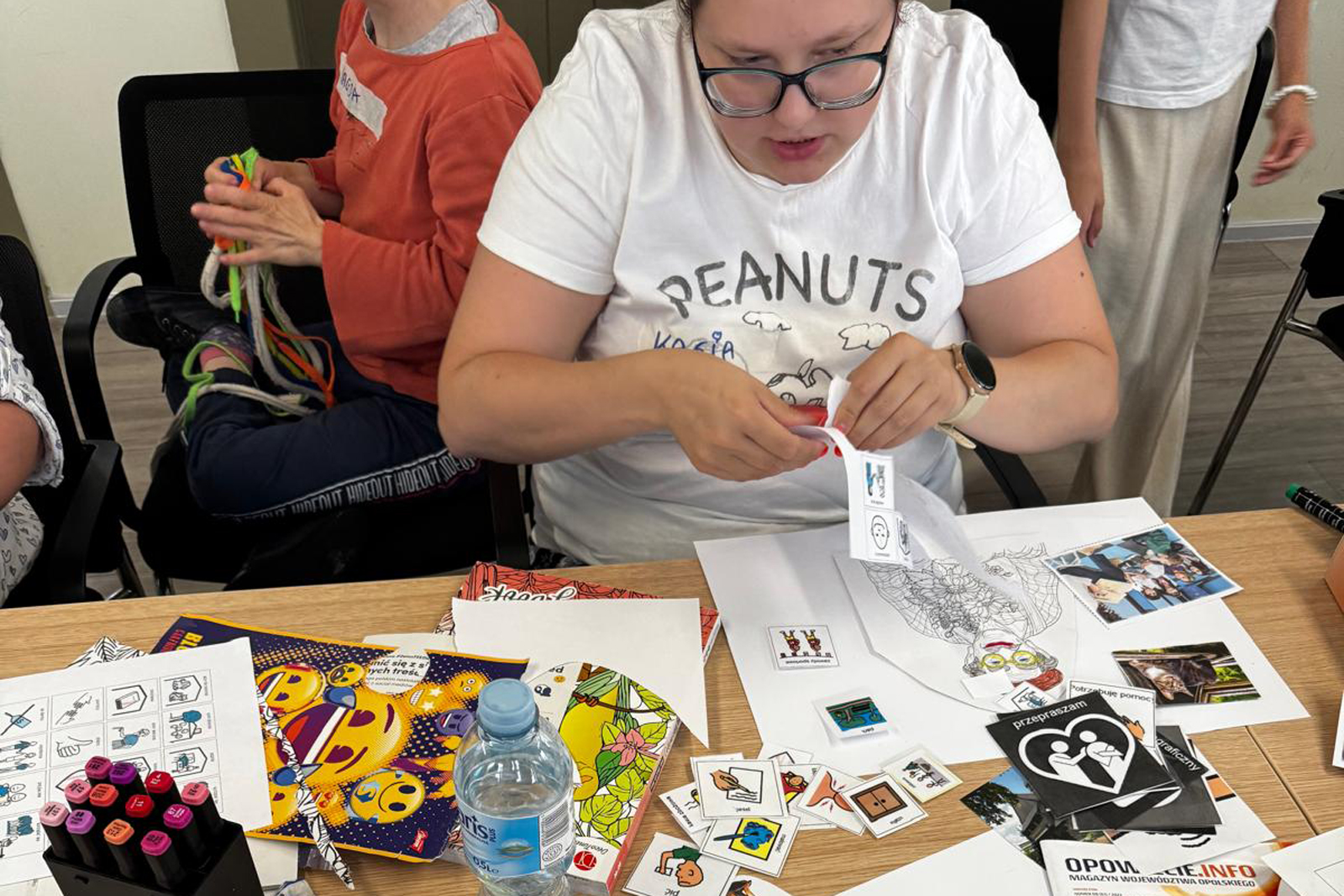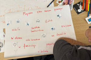 Warsztaty zakończyły się tworzeniem kolaży, które w kreatywny sposób podsumowały zdobytą wiedzę i osobiste refleksje uczestników. Prace były kolorowe, pełne pozytywnej energii i inspirujących haseł – pokazujących, jak wielki potencjał drzemie w naszych uczestnikach.