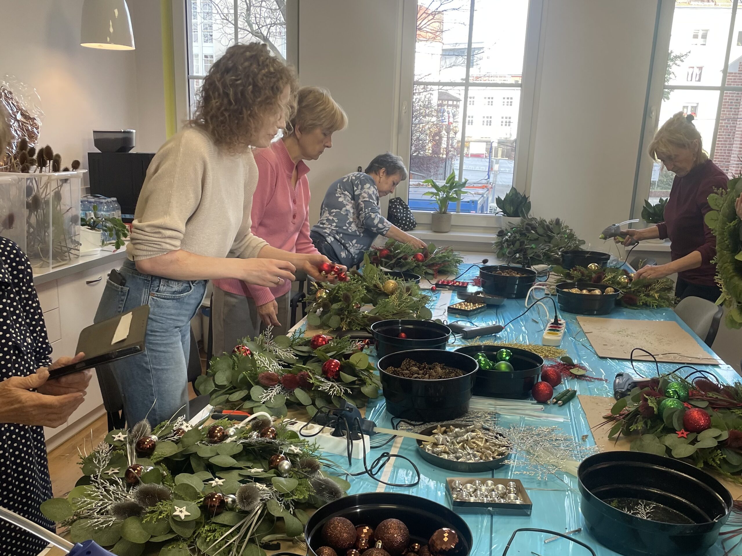 Choć na początku wizja samodzielnego wykonania tak misternych kompozycji mogła wydawać się nieco przytłaczająca, dzięki cierpliwości, wskazówkom i wsparciu Weroniki każdy z uczestników opuścił warsztaty z niepowtarzalnym stroikiem bożonarodzeniowym — pełnym ciepła, radości i osobistego charakteru.