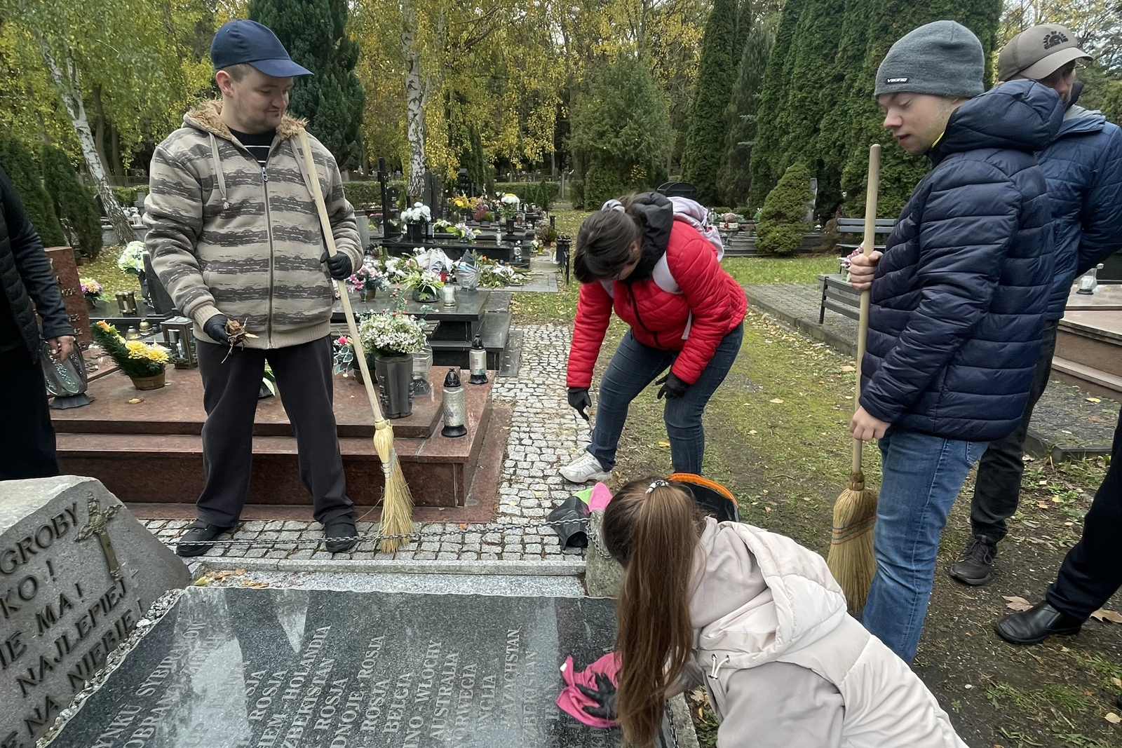 Podczas zajęć uczestnicy poznali specyfikę pracy osób dbających o porządek na Cmentarzu Komunalnym w Opolu. Następnie – przy wsparciu trenera pracy oraz wolontariuszy – wspólnie uporządkowali wskazane mogiły.